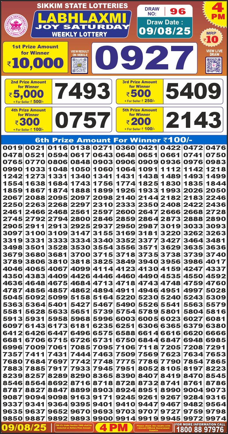 Labhlaxmi Joy Weekly 4pm Result 09.08.2025