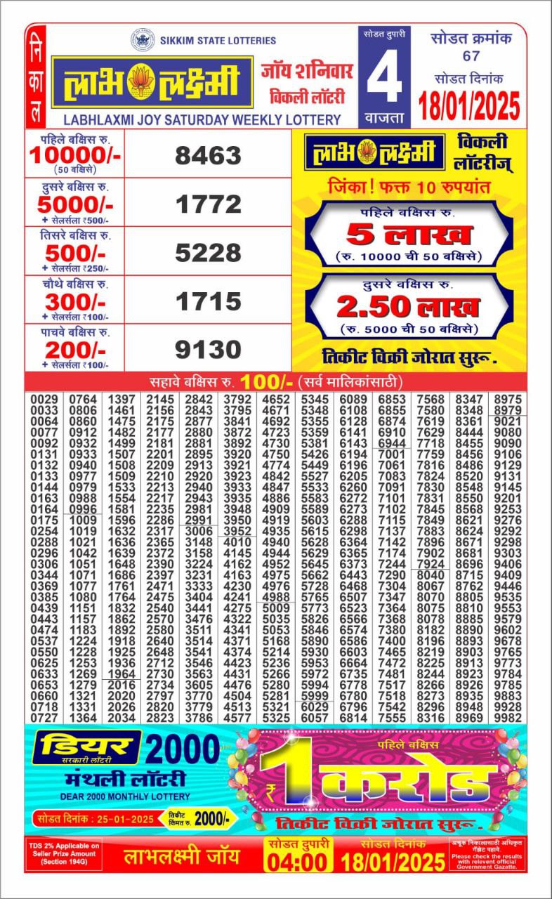 LabhLaxmi joy weekly 4PM Result 18.1.25