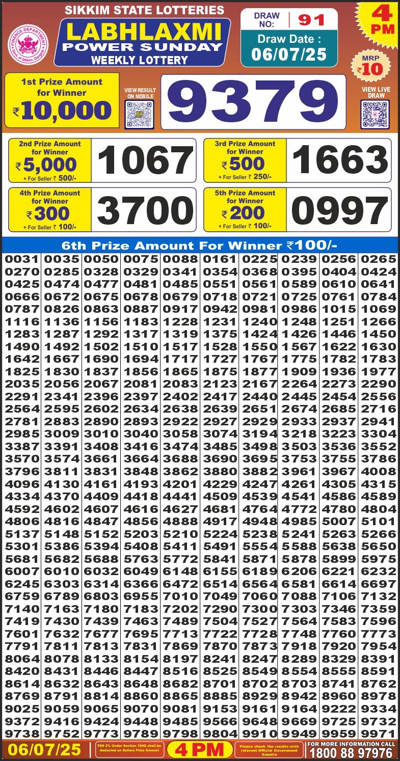 LabhLaxmi power weekly 4PM Result 06.07.2025