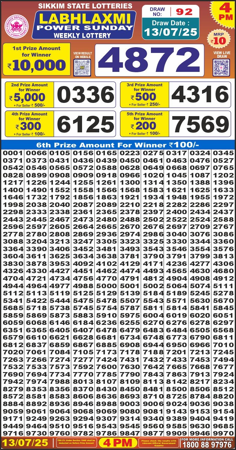 LabhLaxmi power weekly 4PM Result 13.07.2025
