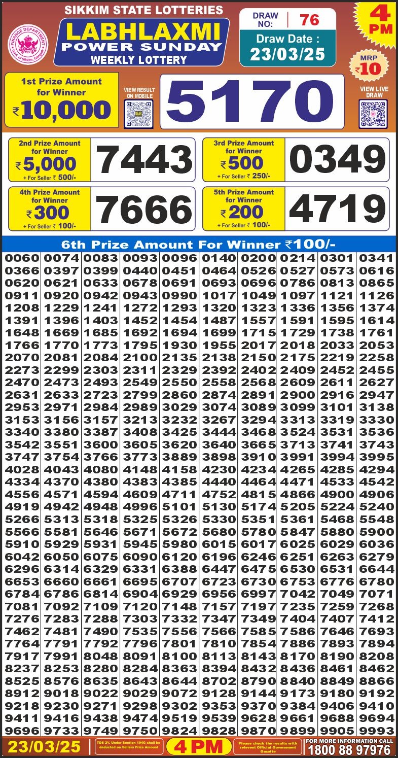 LabhLaxmi power weekly 4PM Result 23.3.25