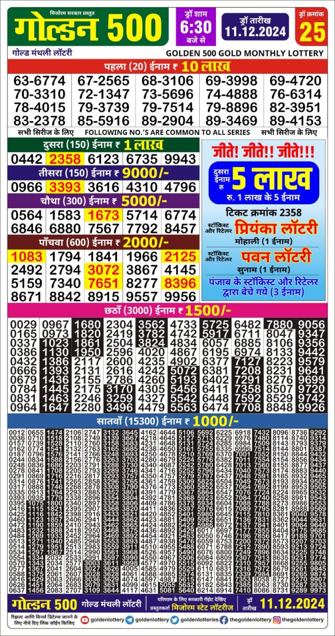 Golden 500 gold monthly lottery result 11.06.2025