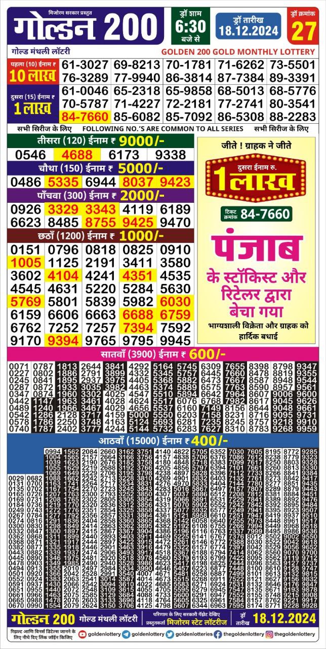 Golden 200 gold monthly lottery result 18.06.2025
