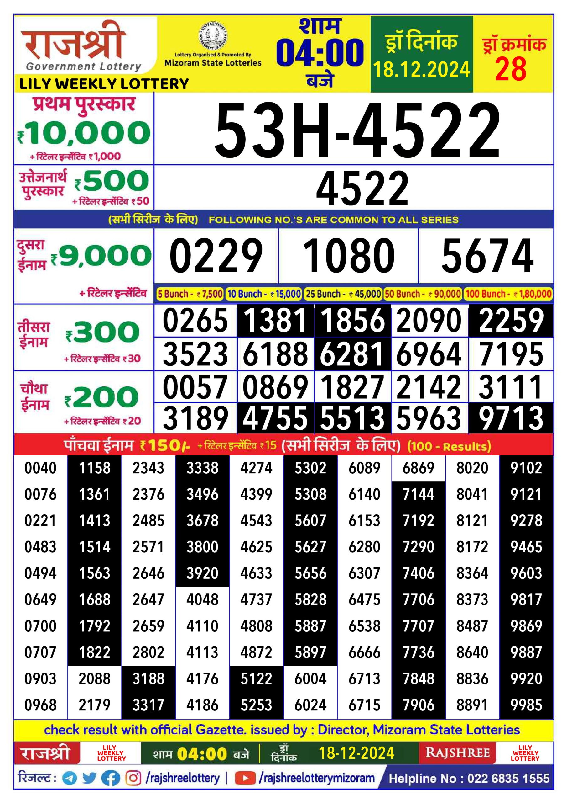 Rajshree 100 monthly lottery result 03.07.2025