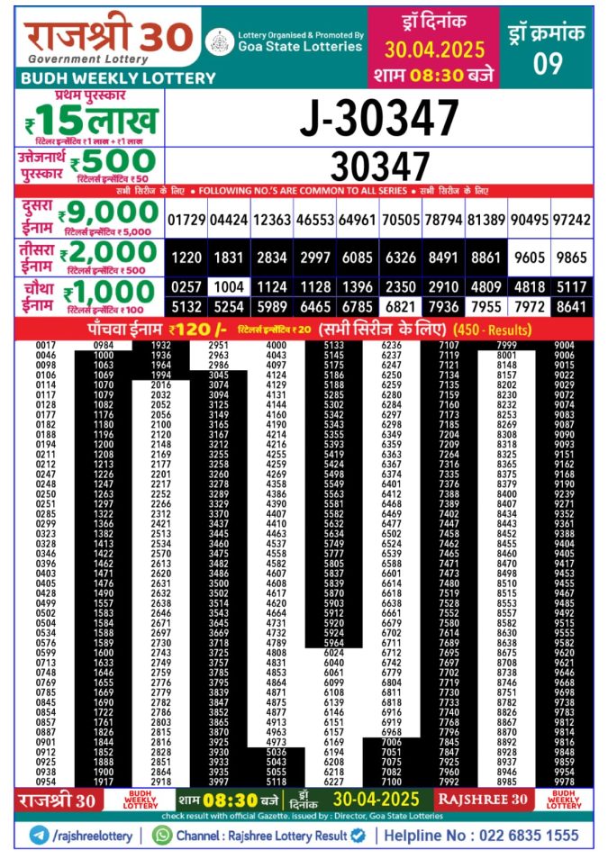 Rajshree 30 Lottery 8:30PM Result 30.4.25
