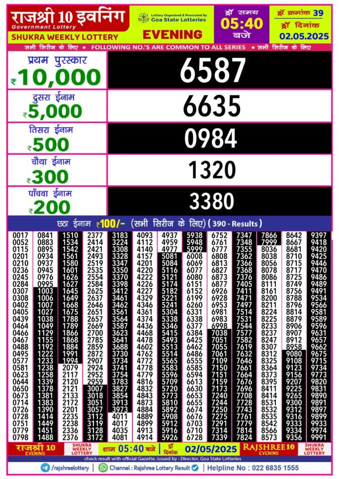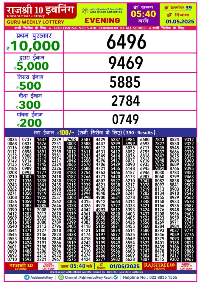 Rajshree 10 evening Thursday 5:40pm result 1.5.25