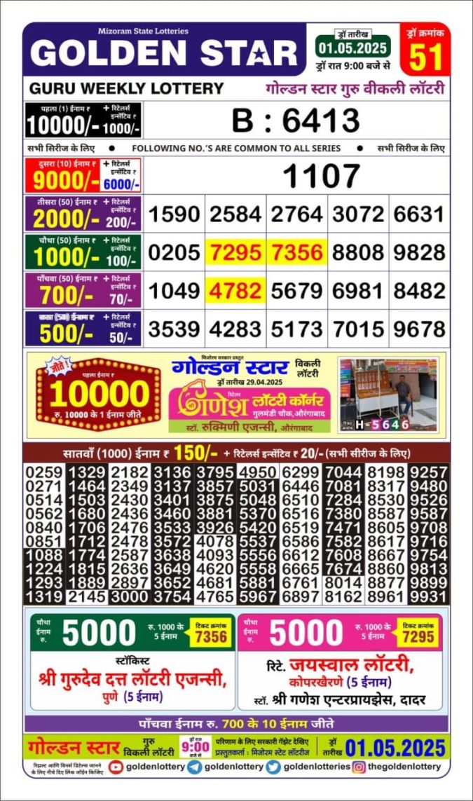 Dear mahanadi Thursday Weekly 1pm result 1.5.25