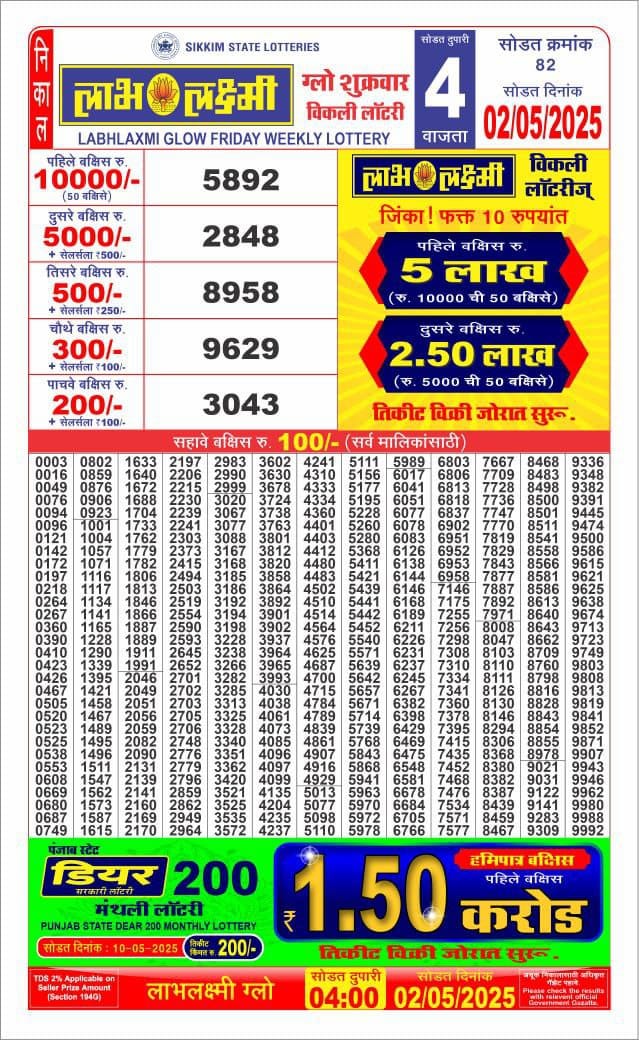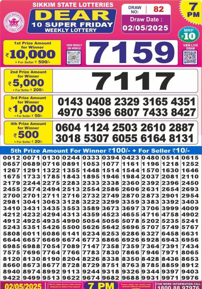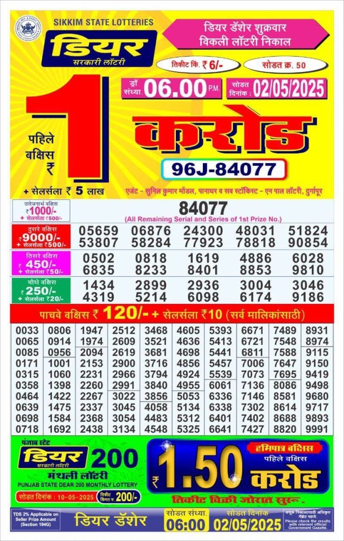 Punjab state dear 10 6pm lottery result 2.5.2025