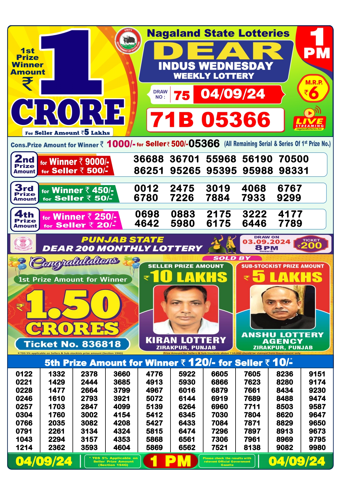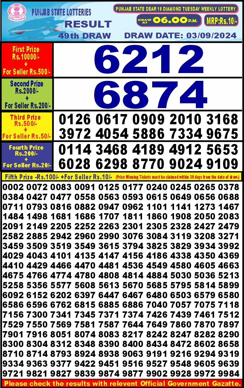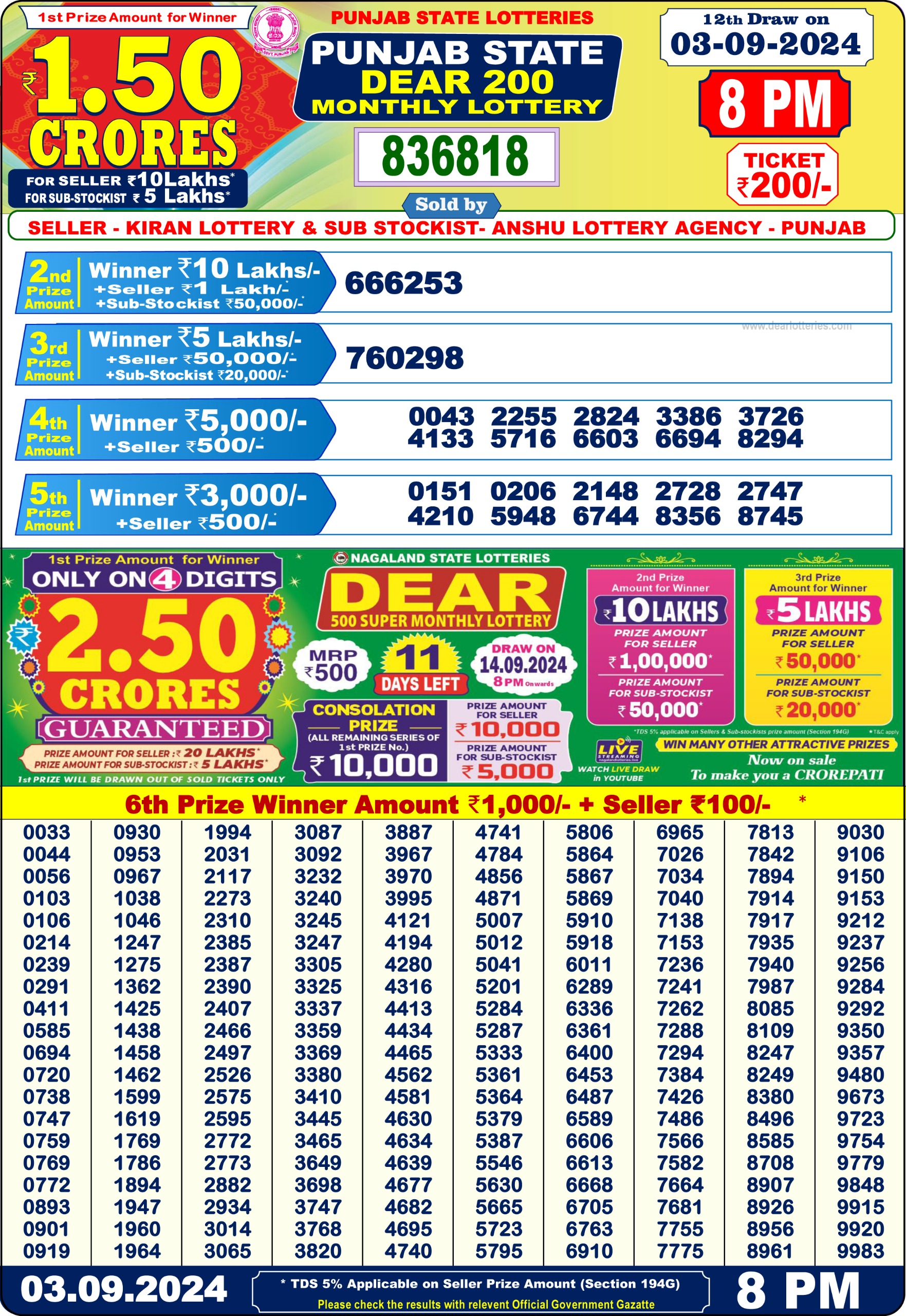 • Punjab State Dear 50 6pm Lottery Result 14.12.2025