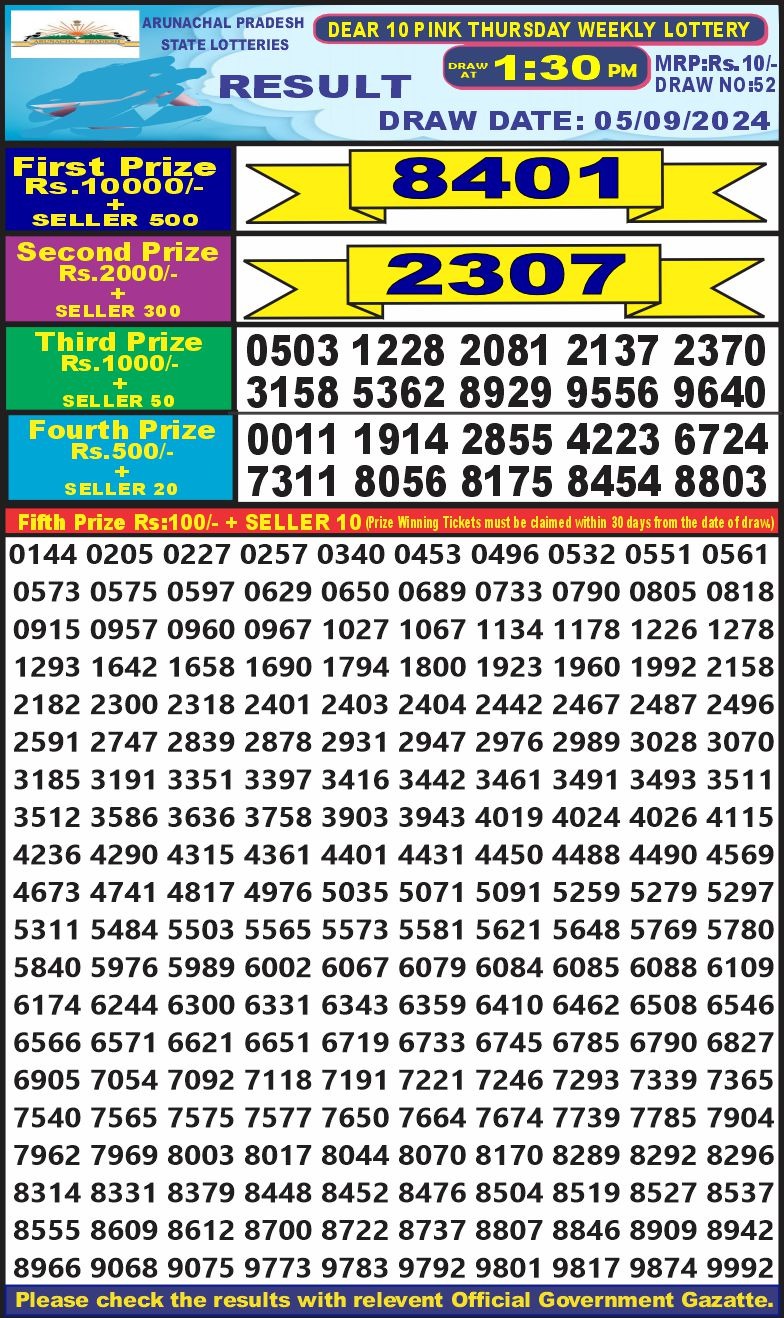 Dear 10 blue lottery 1.30PM Result 5.5.25