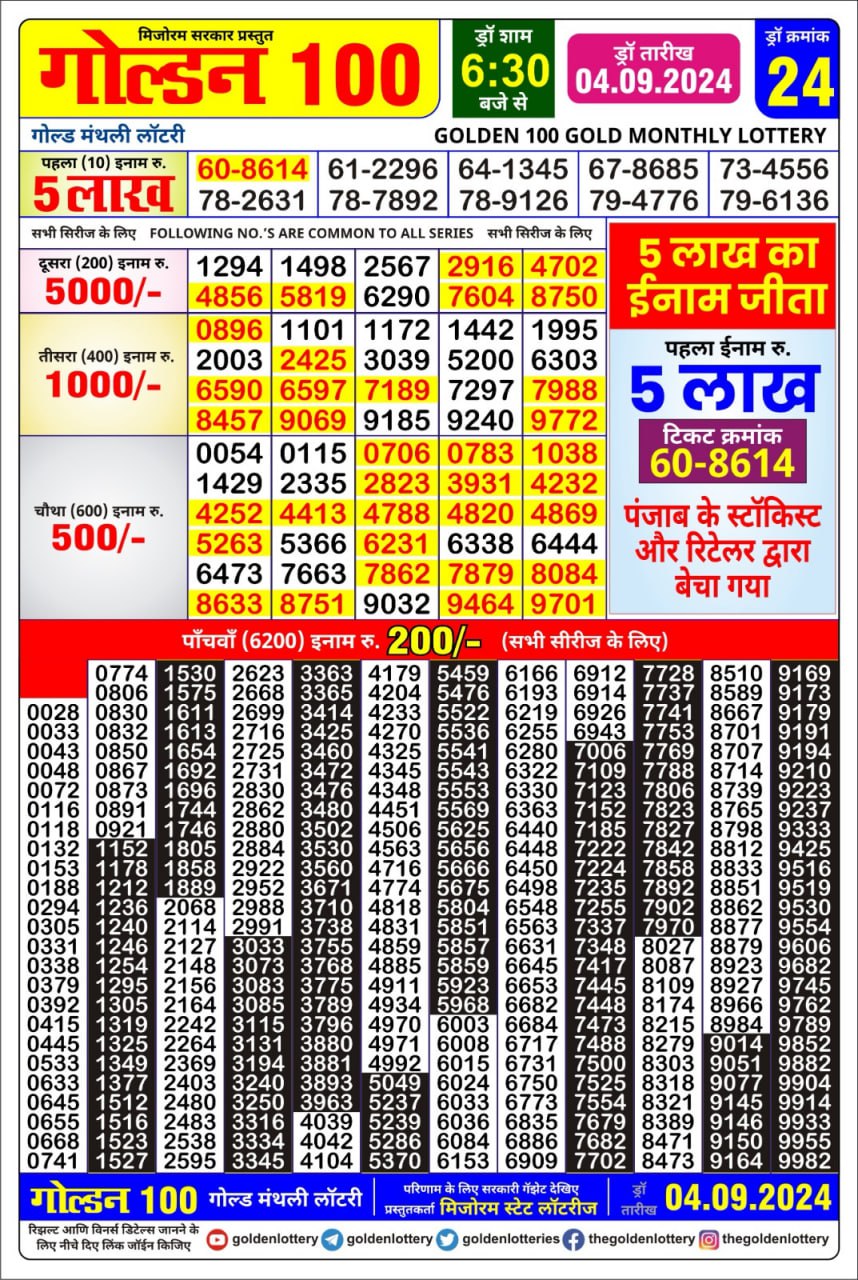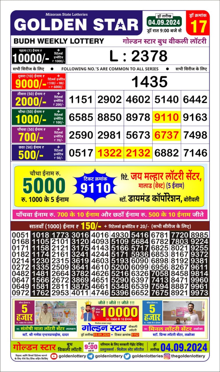 Golden Star weekly Lottery result 9pm 4.5.2025
