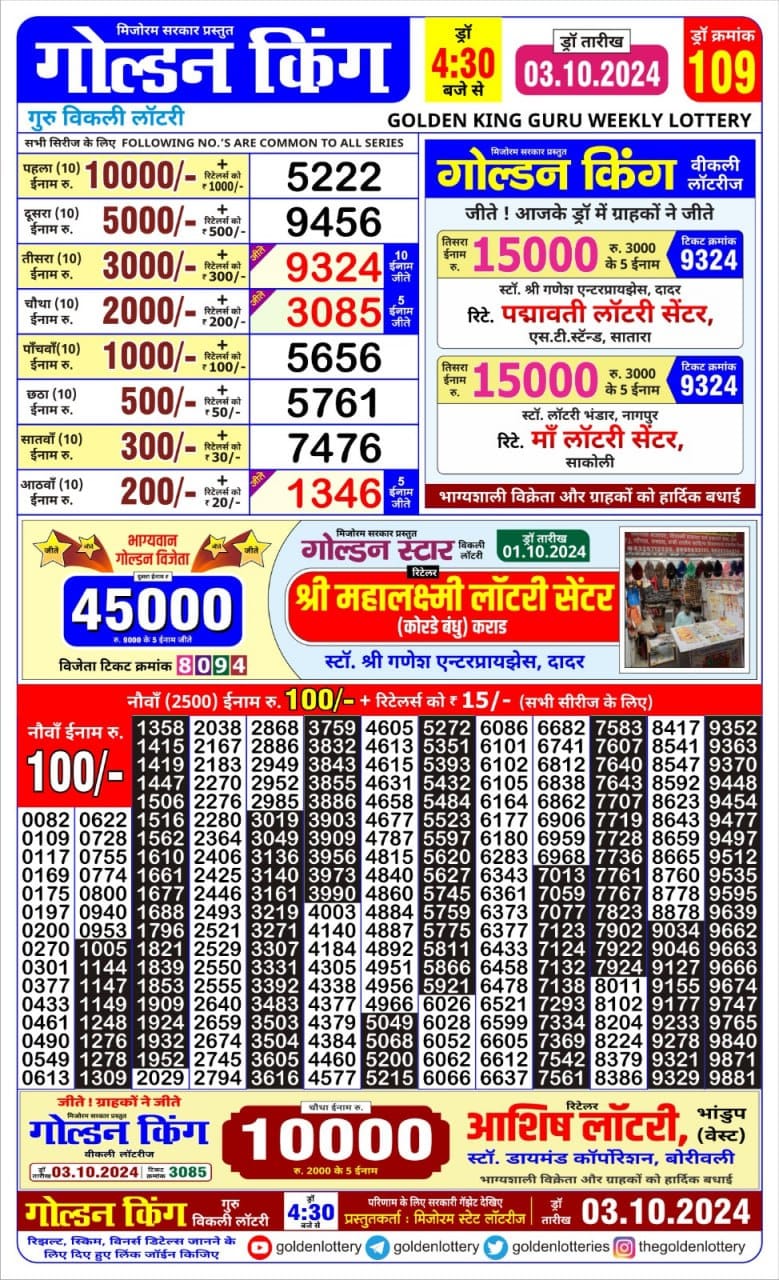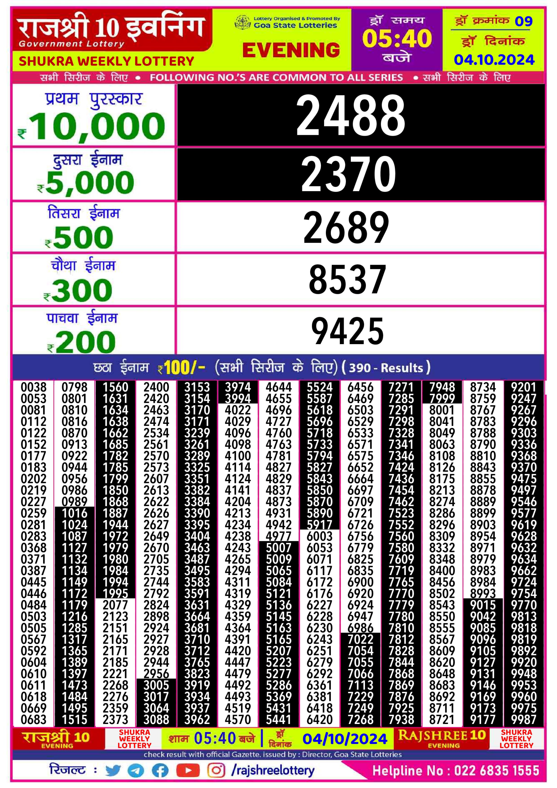 Rajshree 10 evening Thursday 5:40pm result 1.5.25