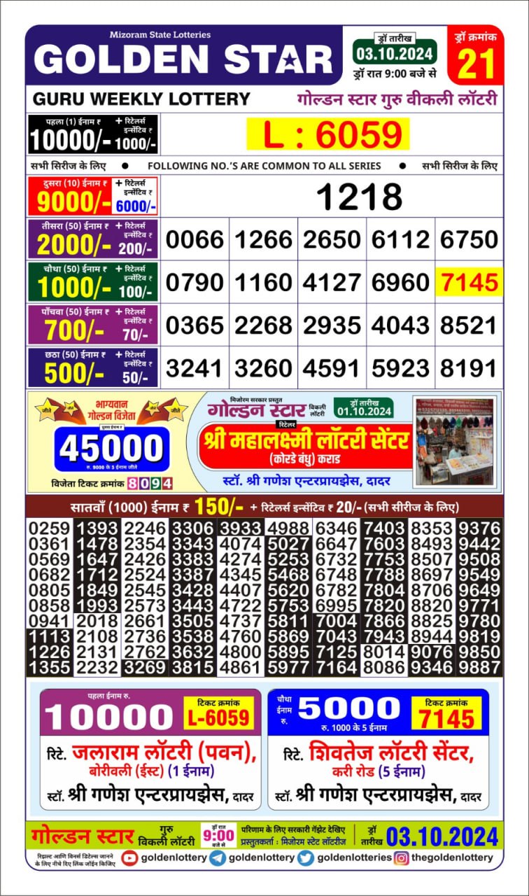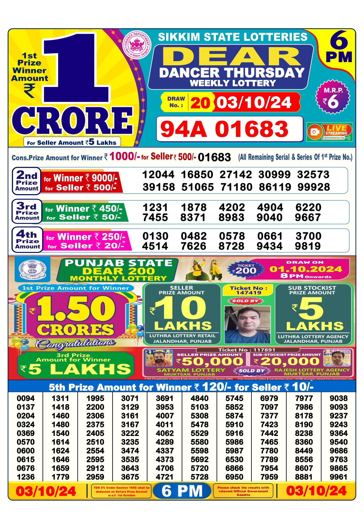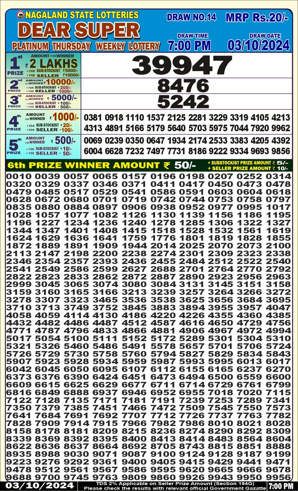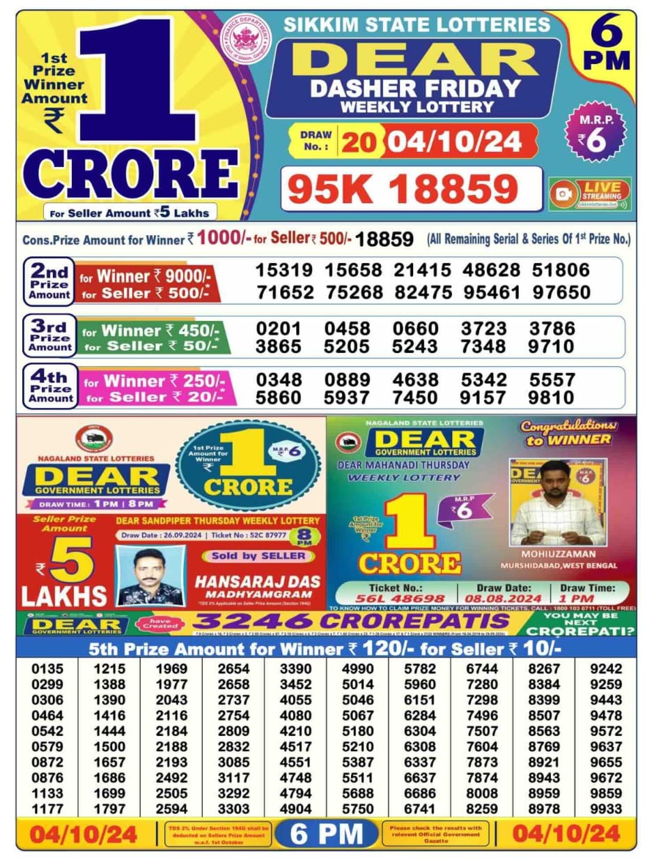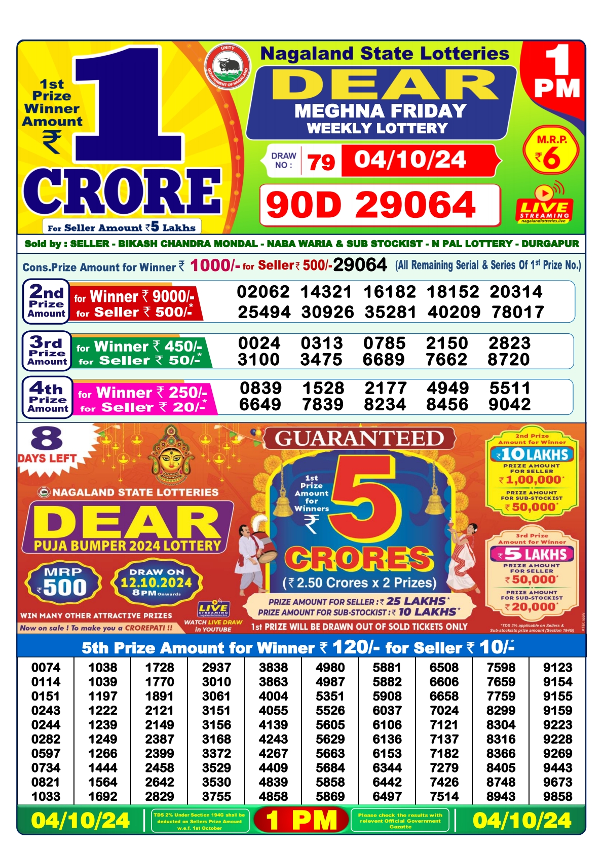 Dear mahanadi Thursday Weekly 1pm result 1.5.25