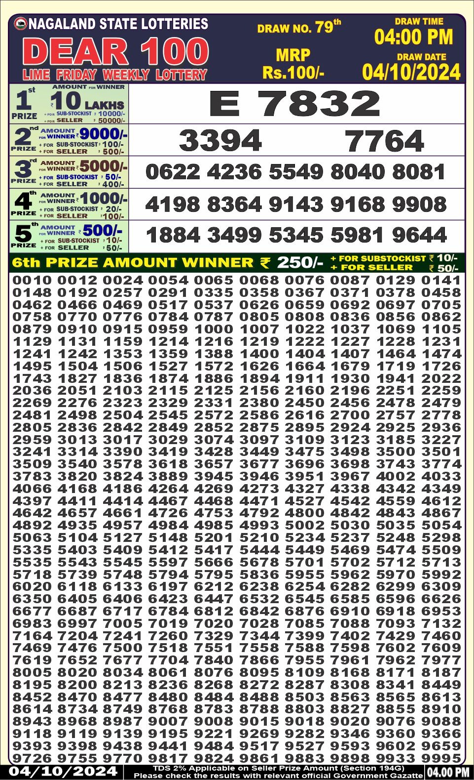 Dear 50 Chenab 5pm Wednesday Lottery Result 30.4.25