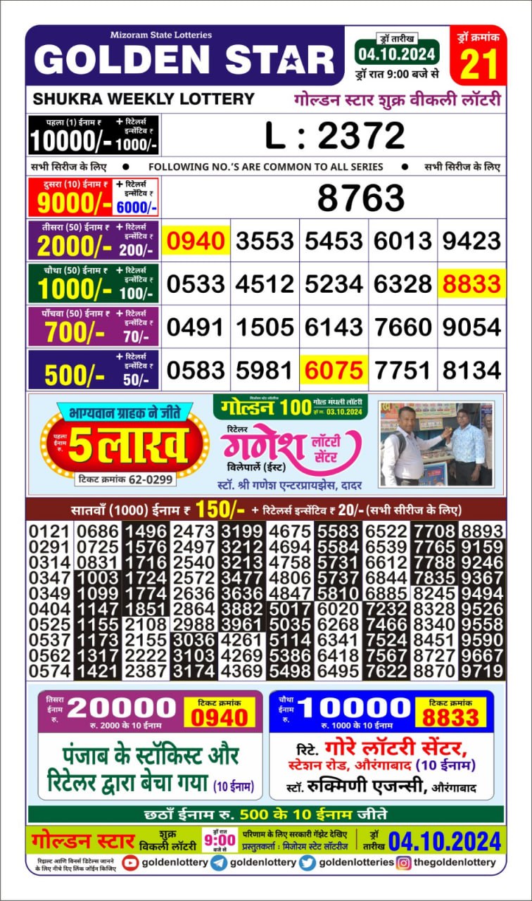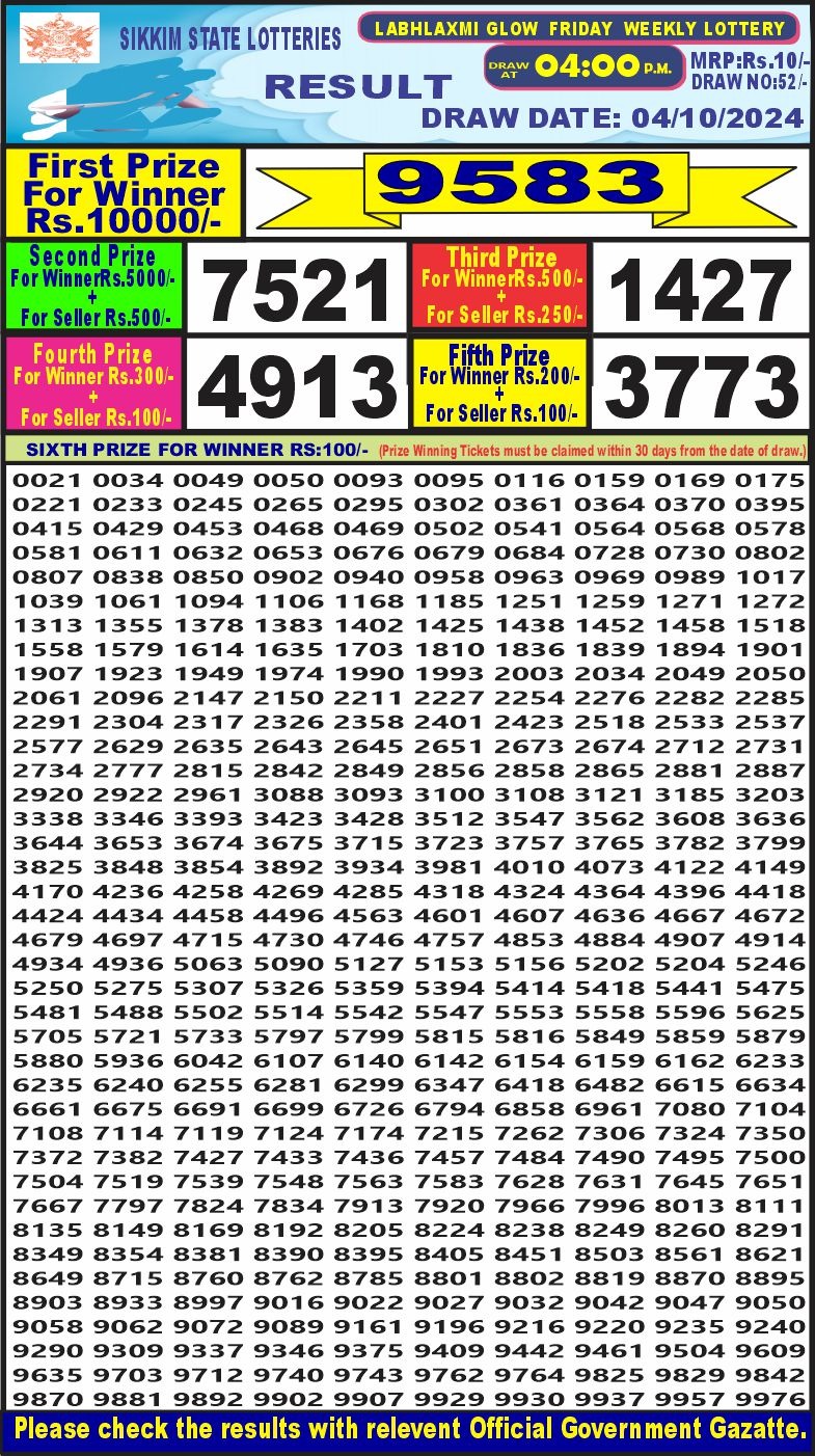 Labh Laxmi Glad weekly 4PM Result 1.5.25