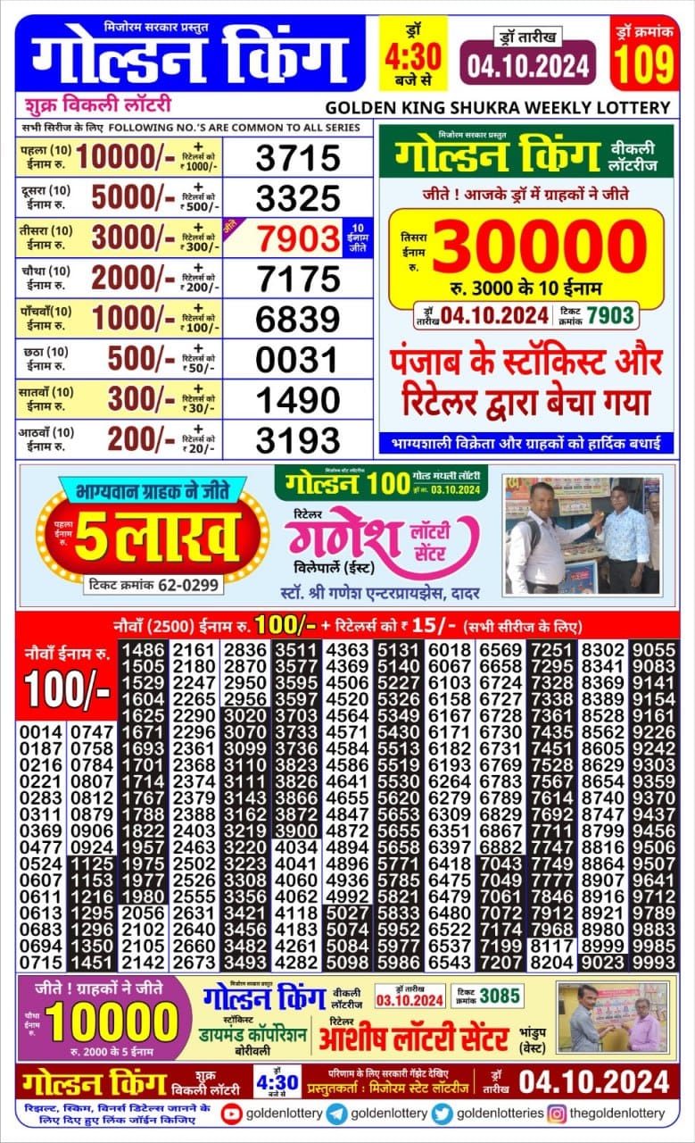 Dear 100 Ganga Thursday Lottery 5pm Result  1.5.25