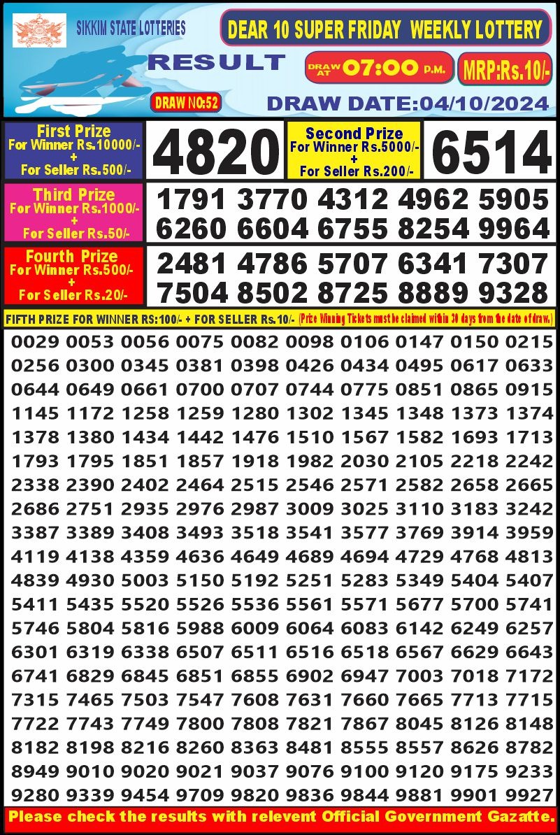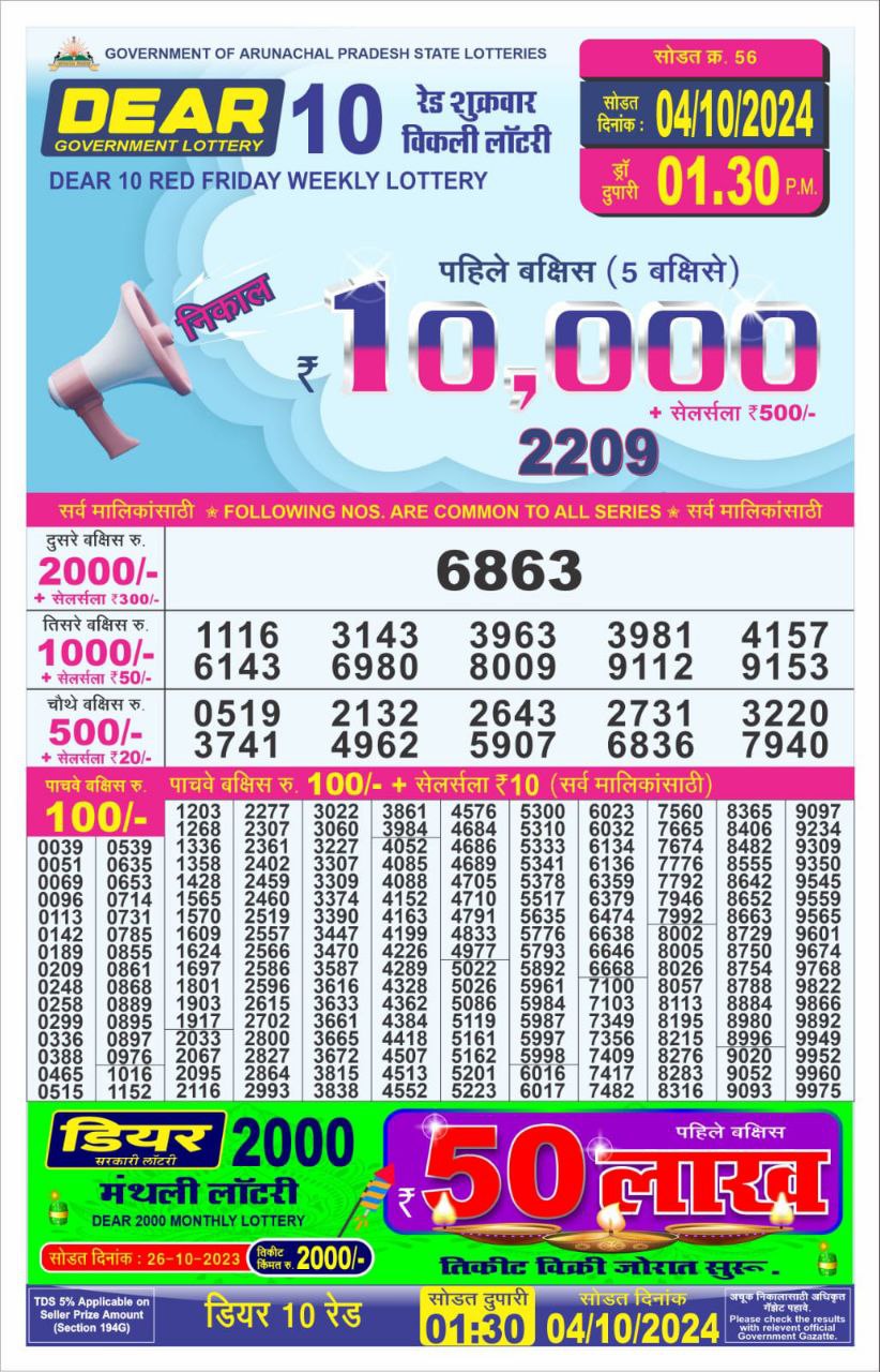 Dear 10 pink lottery 1.30PM Result 1.5.25