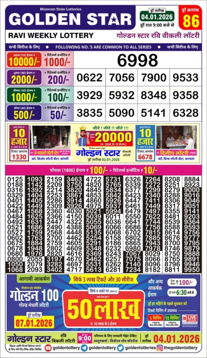 Punjab State 200 Monthly Lottery Result – 6 PM Draw on 03 January 2026 The Punjab State…