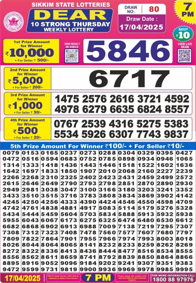 Dear dasher Friday weekly 6PM Result 18.4.2025