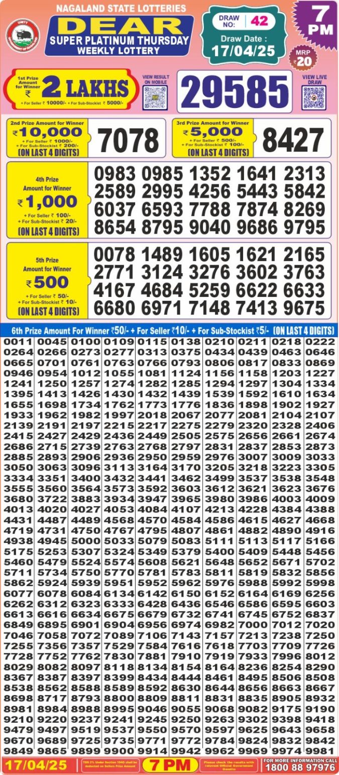 Dear 10 yellow lottery 1.30PM Result 19.4.25