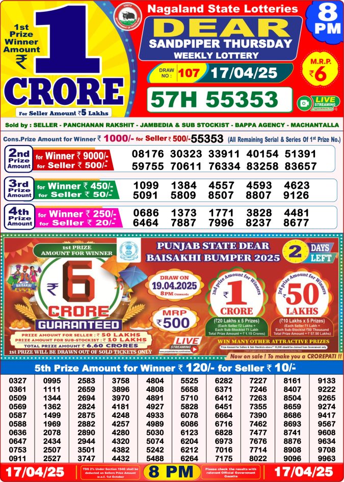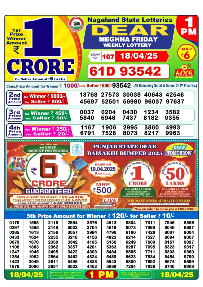 Punjab state dear 10 6pm lottery result 18.4.2025