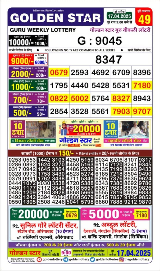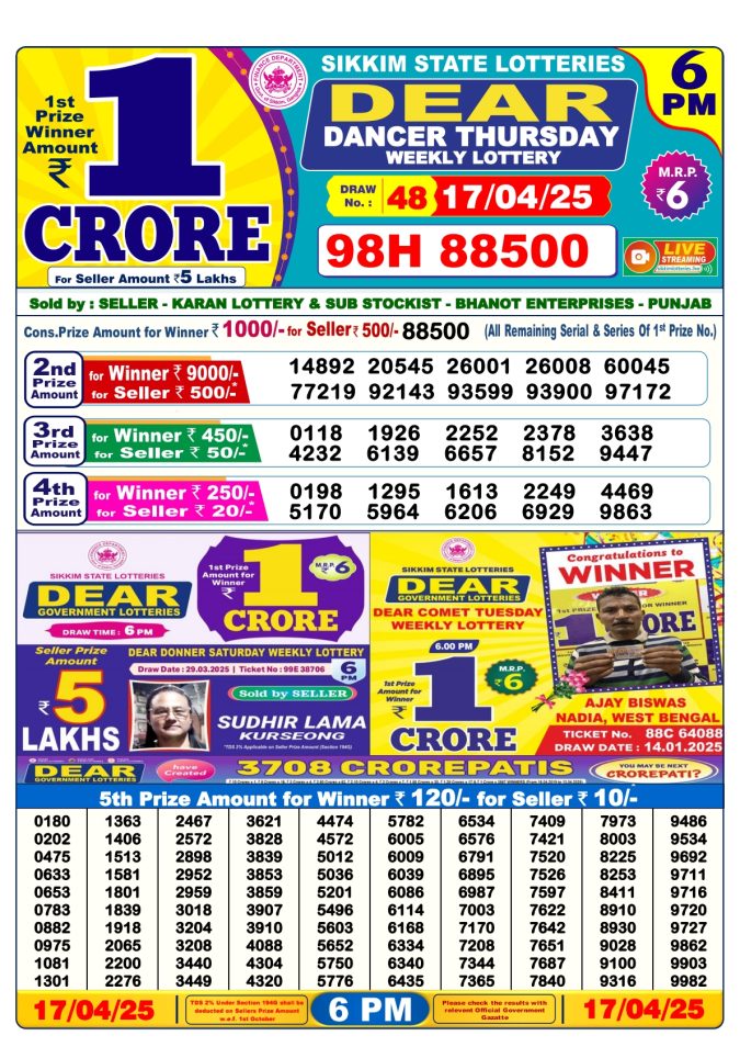 Dear mahanadi Thursday Weekly 1pm result 17.4.25
