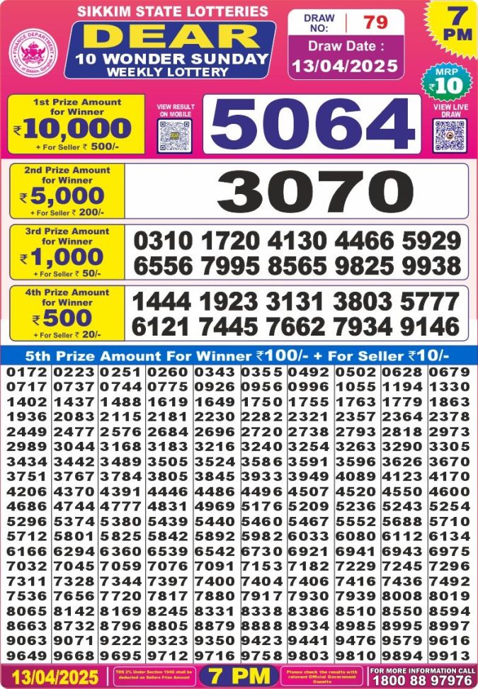 Dear 10 wonder 7pm result 13.4.25