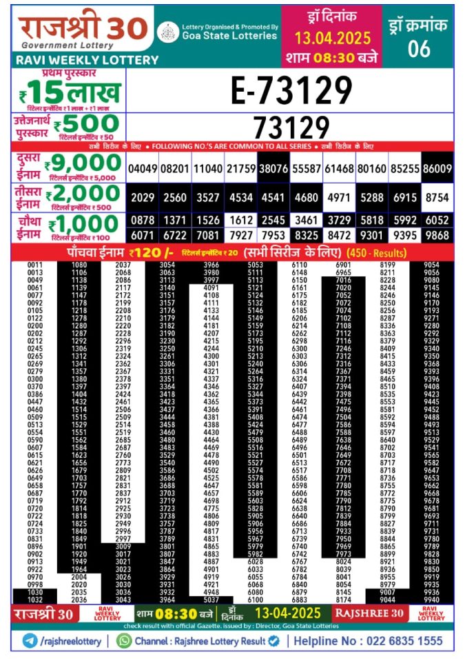 Rajshree 30 Lottery 8:30PM Result 13.4.2025