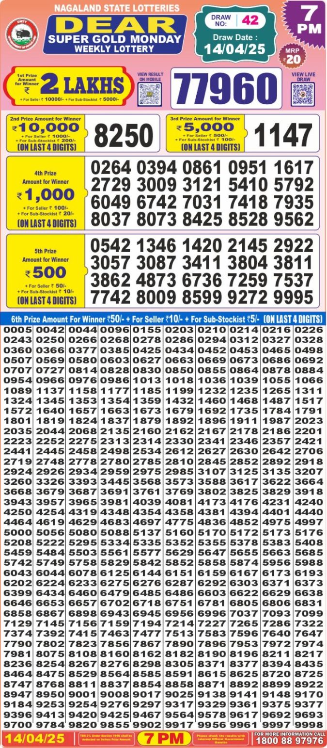 Dear Super Gold Monday 7pm result 14.4.25