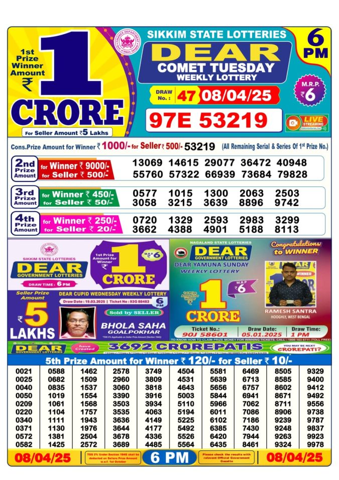 Dear comet tuesday weekly 6PM Result 8.4.25