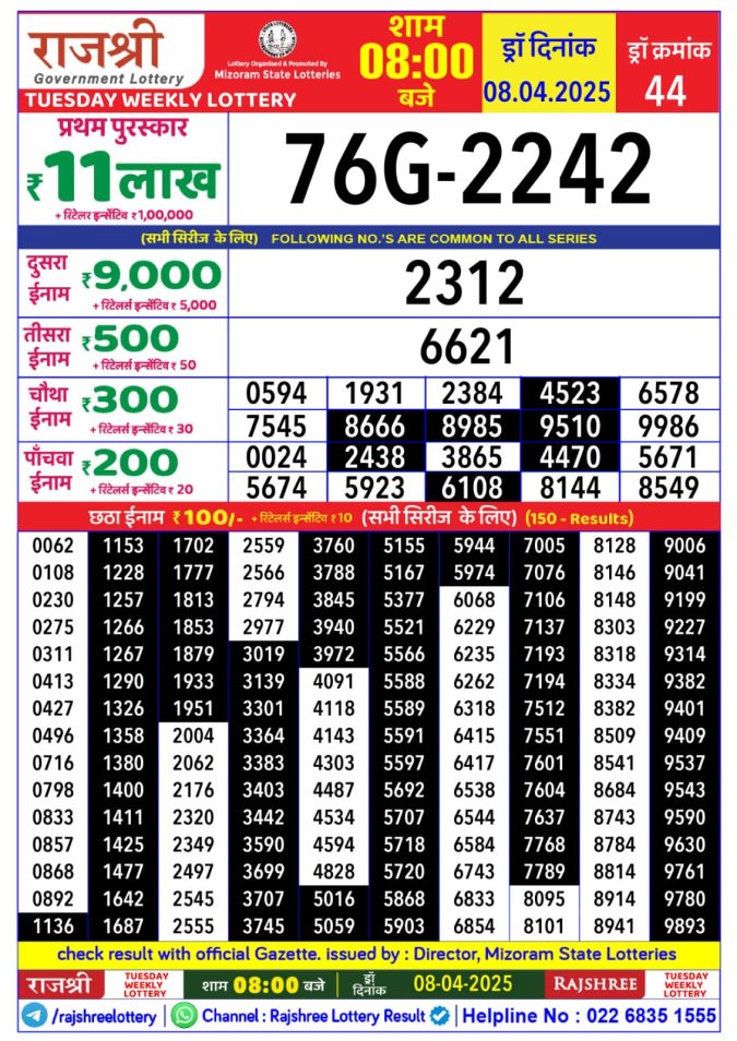 Rajshree 500 Monthly lottery result 8.4.25