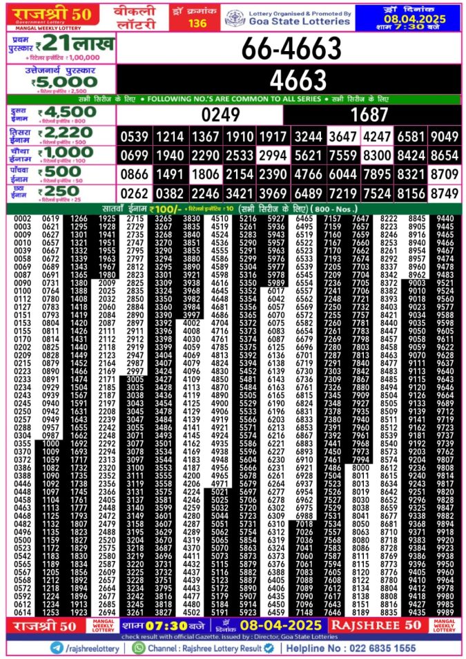 Rajshree 50 Lottery 7:30PM Result 8.4.25