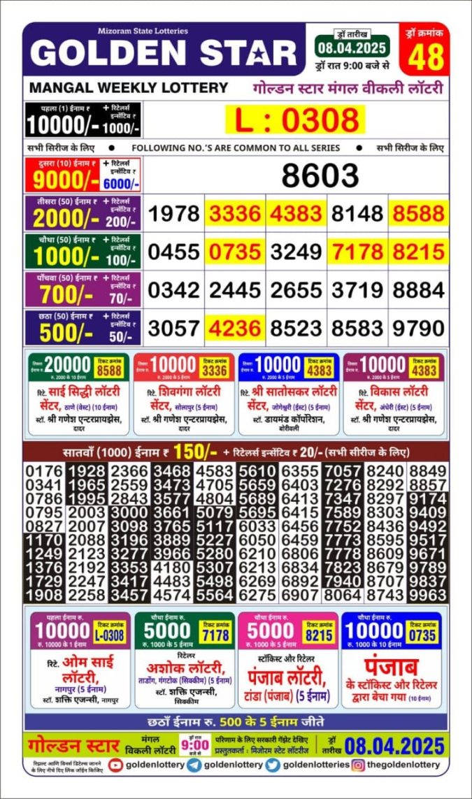 Golden Star weekly Lottery result 9pm 8.4.25
