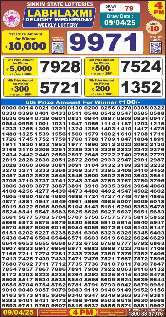Labh Laxmi Delight weekly Lottery 4PM Result 9.4.25