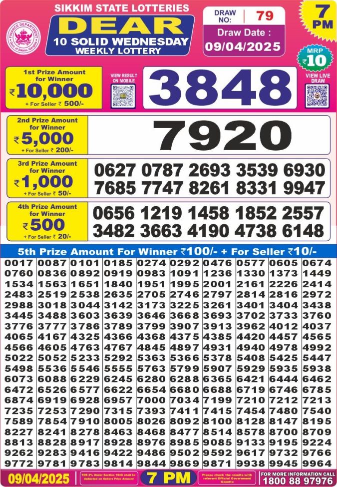 Dear 10 solid 7pm Lottery result 9.4.25