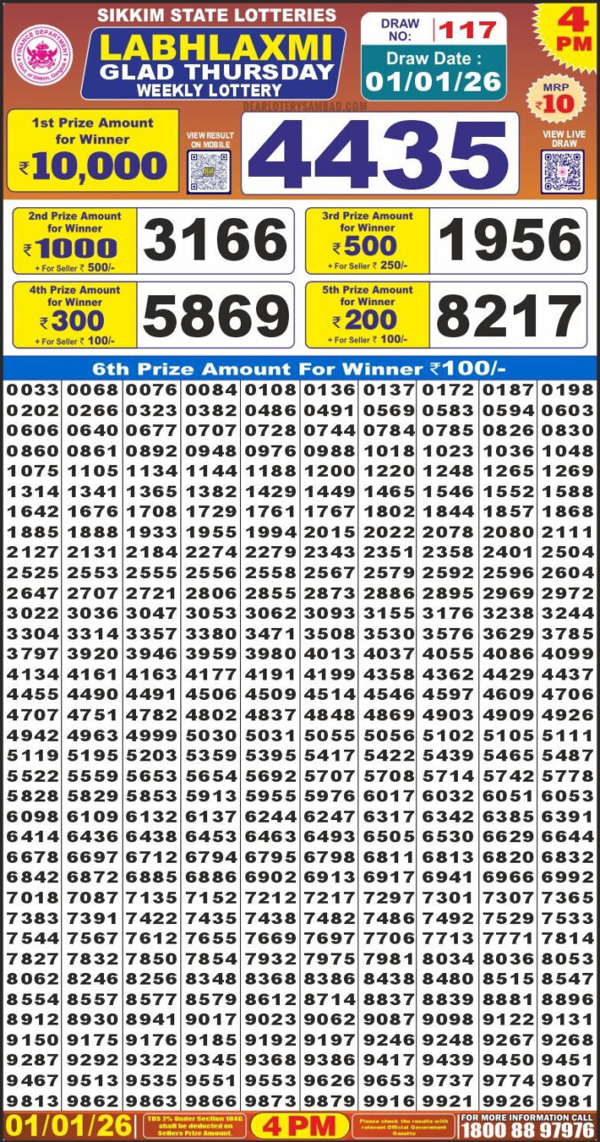 Dear Fame Thursday Weekly Lottery 8pm Result 01.01.2026