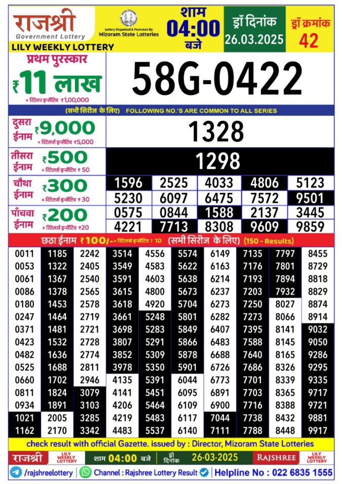 Daily Dear Lottery 1PM”>Rajshree Lottery