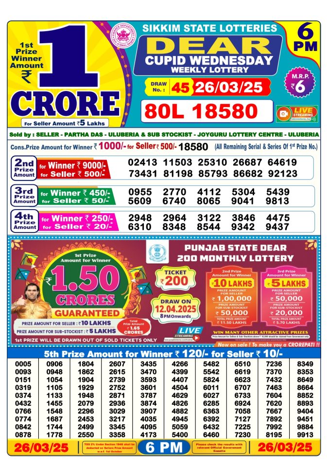 • Punjab State Dear 50 6pm Lottery Result 07.11.2025