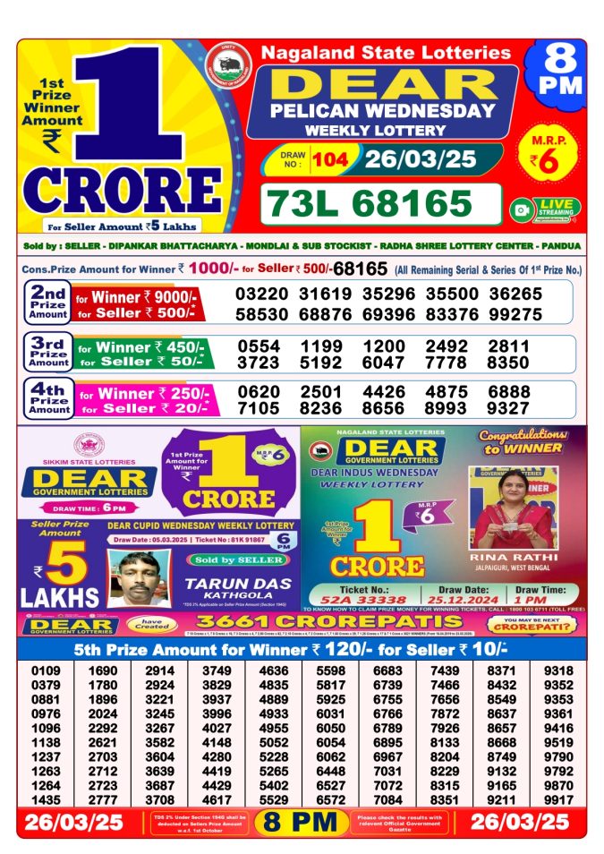Dear blitzen monday weekly 6PM Result 3.3.25