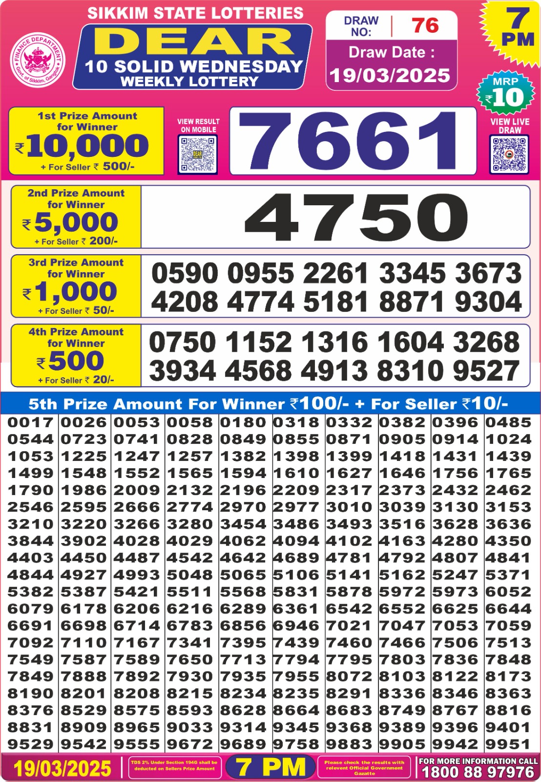 Dear 10 pink lottery 1.30PM Result 20.3.25