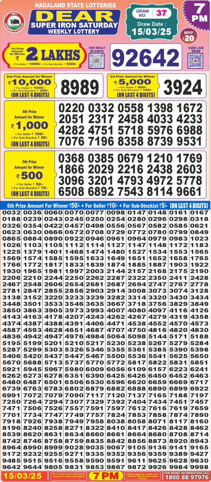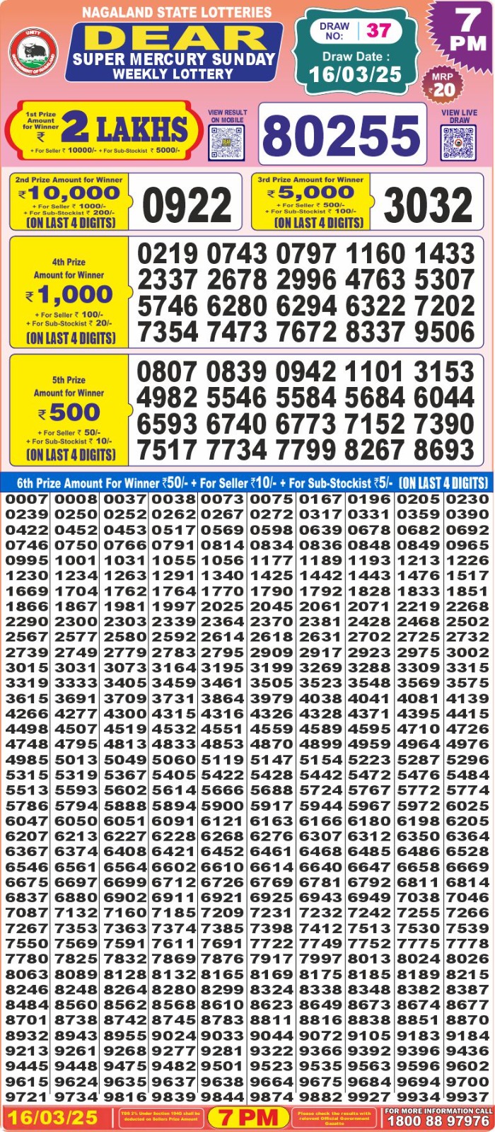 Dear yamuna sunday Weekly 1pm result 16.3.25