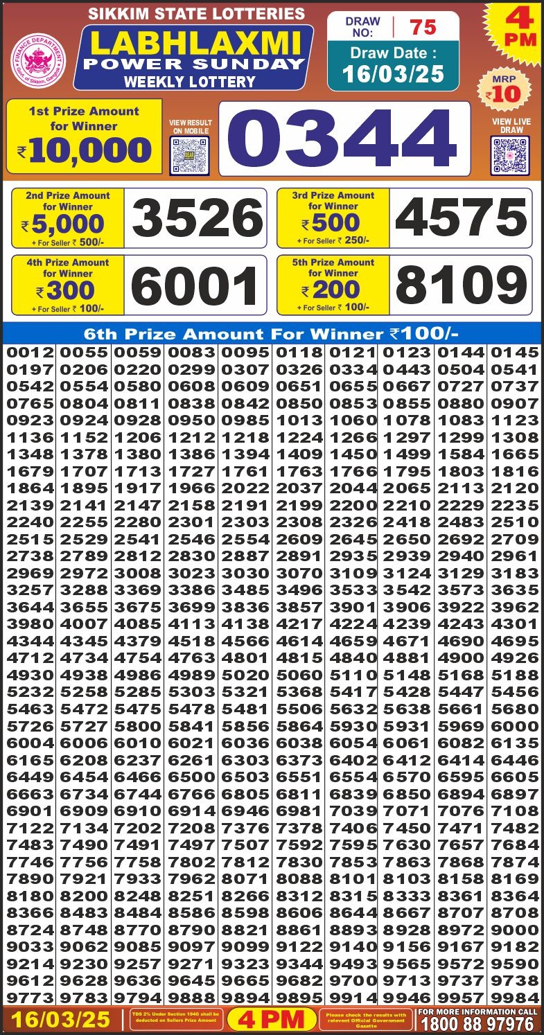 LabhLaxmi power weekly 4PM Result 16.3.25