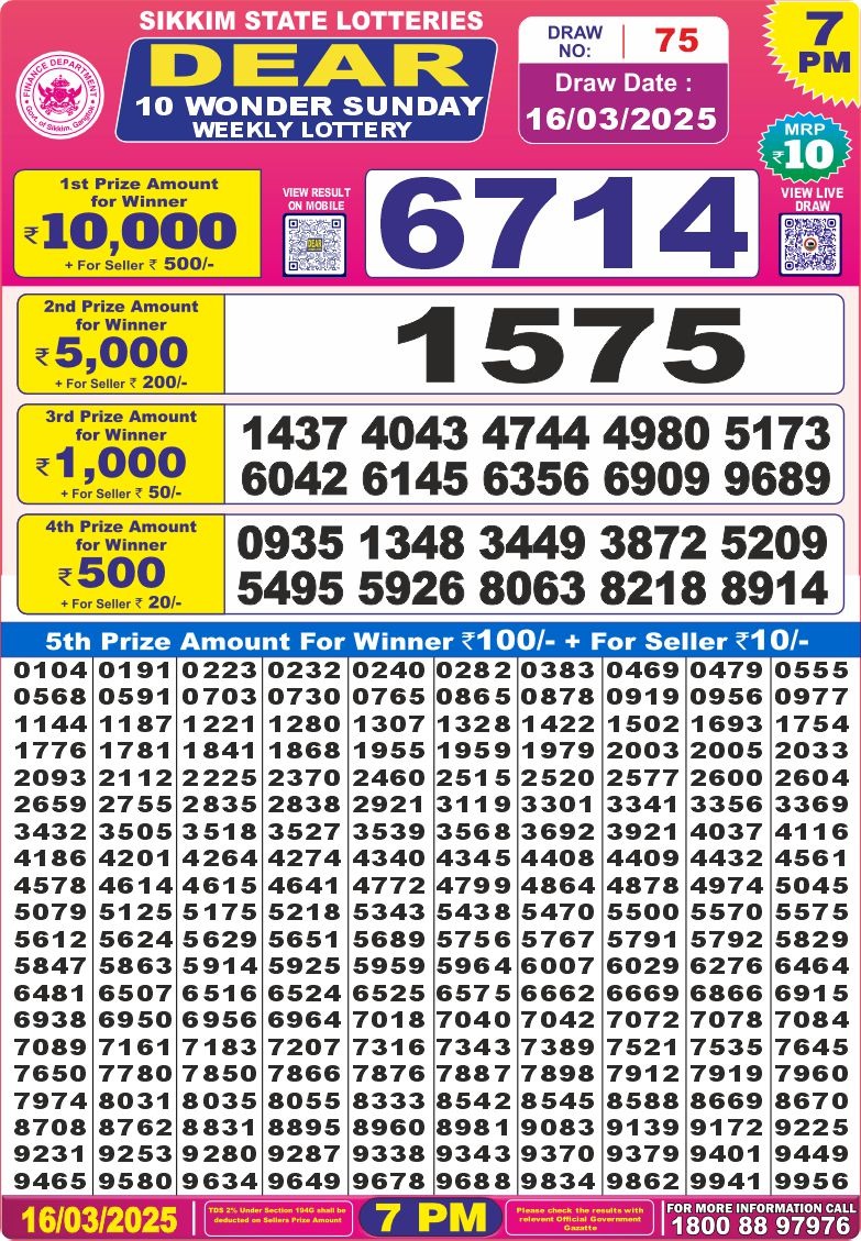 Dear 10 violet lottery 1.30PM Result 16.3.25