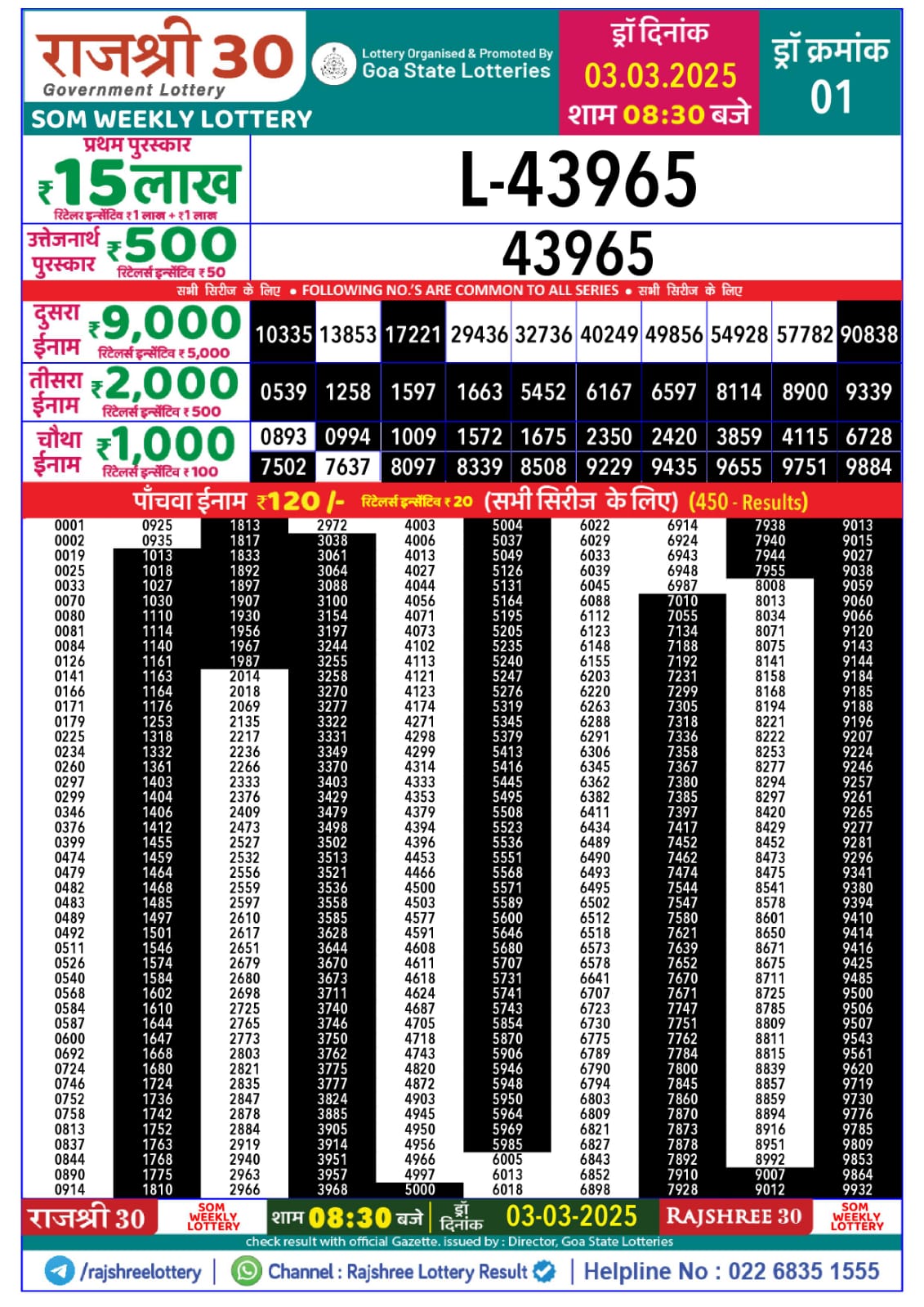 Daily Dear Lottery 1PM”>Rajshree Lottery