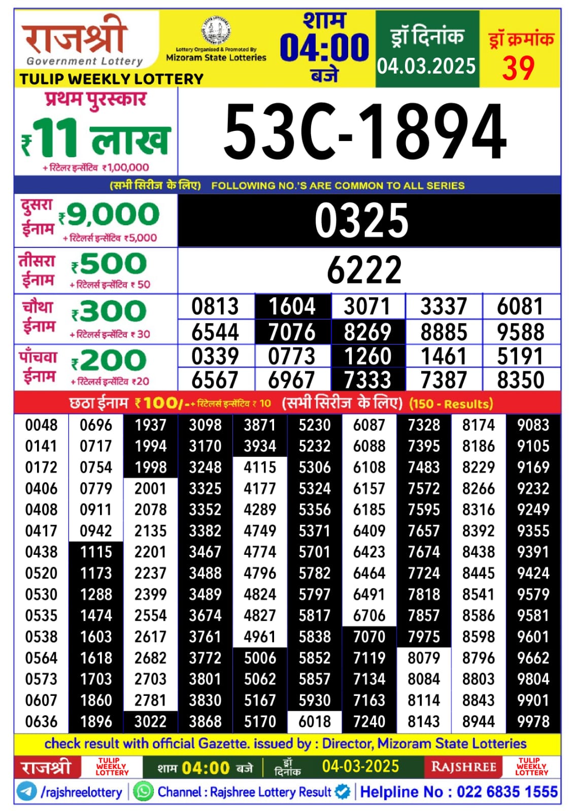 Rajshree 10 evening tuesday 5:40pm result 4.3.25