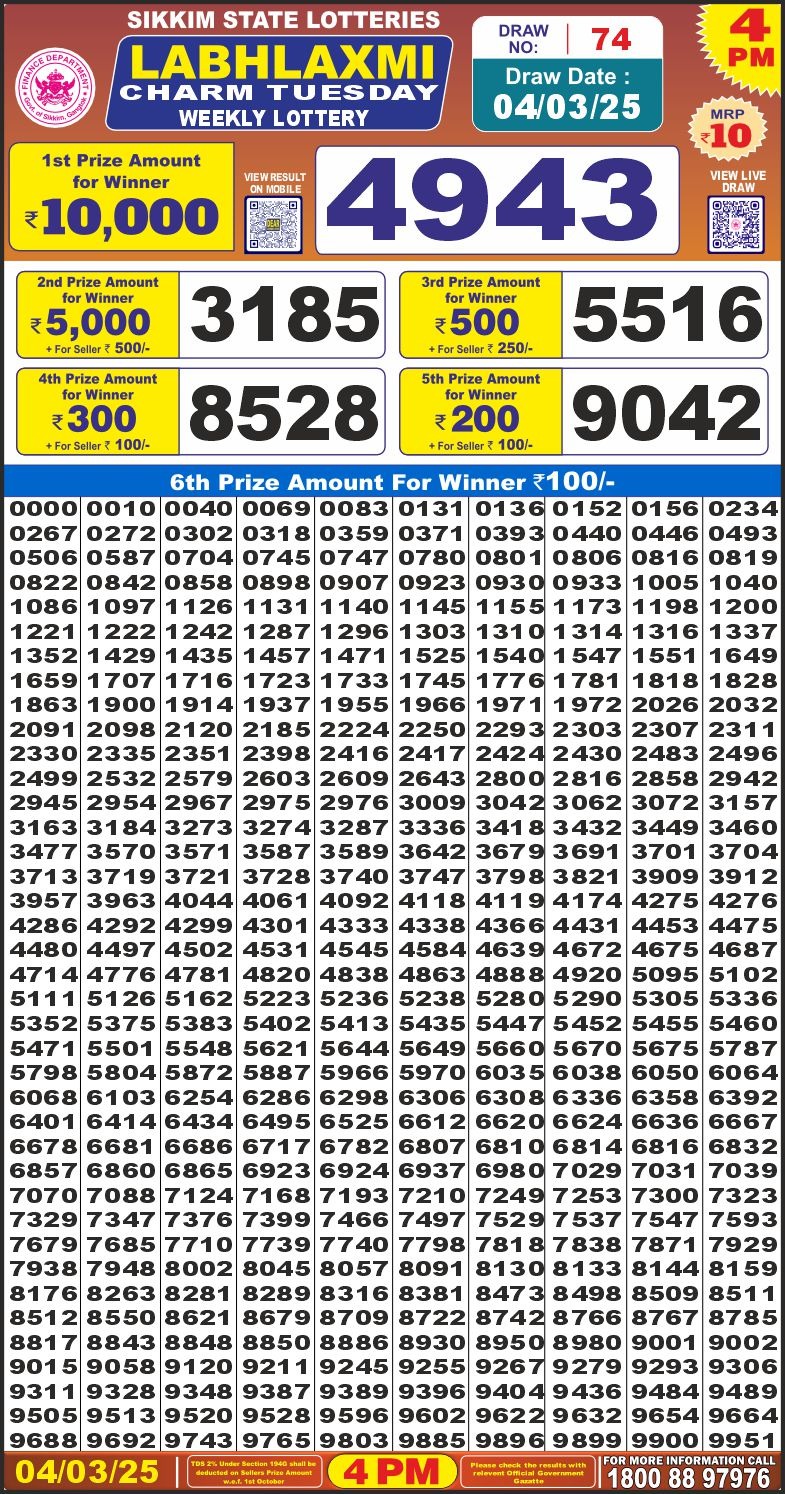 Labh Laxmi charm weekly 4PM Result 4.3.25