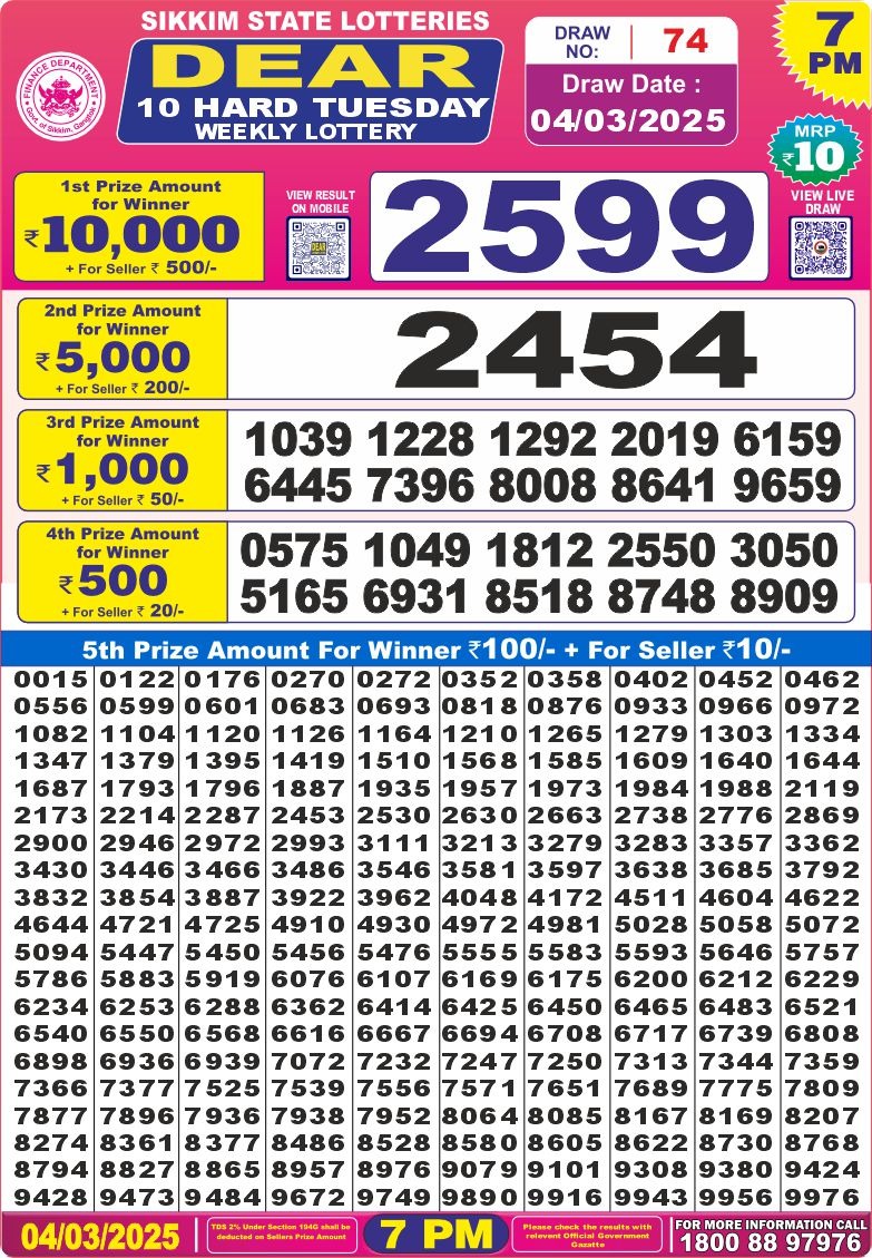 Dear 10 green lottery 1.30PM Result 4.3.25