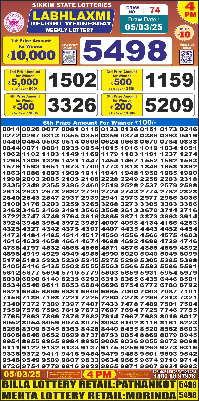 LabhLaxmi Delight weekly 4PM Result 5.3.25