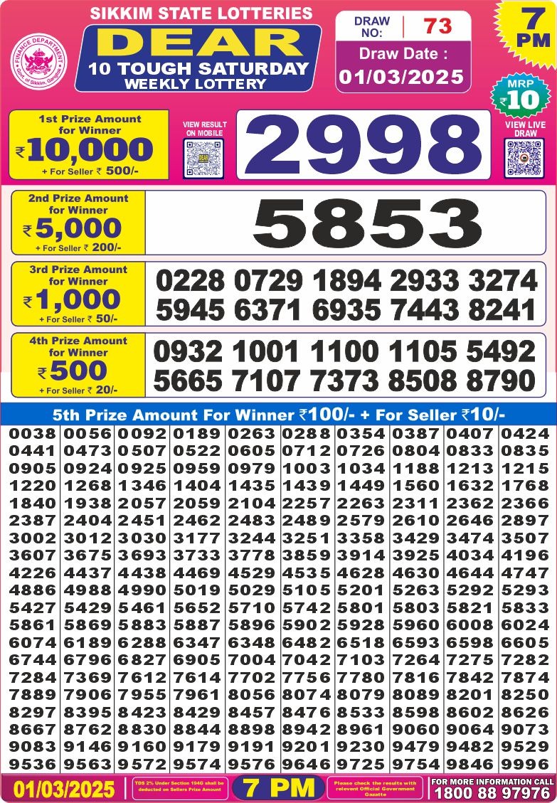 Dear 10 blue lottery 1.30PM Result 3.3.25