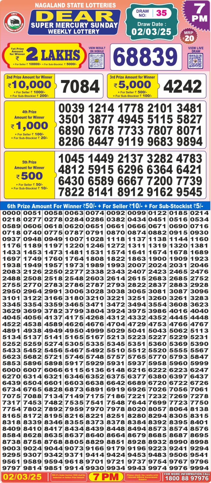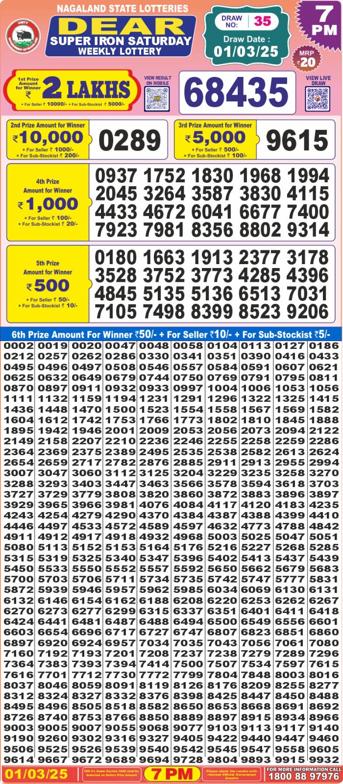 Dear yamuna sunday Weekly 1pm result 2.3.25